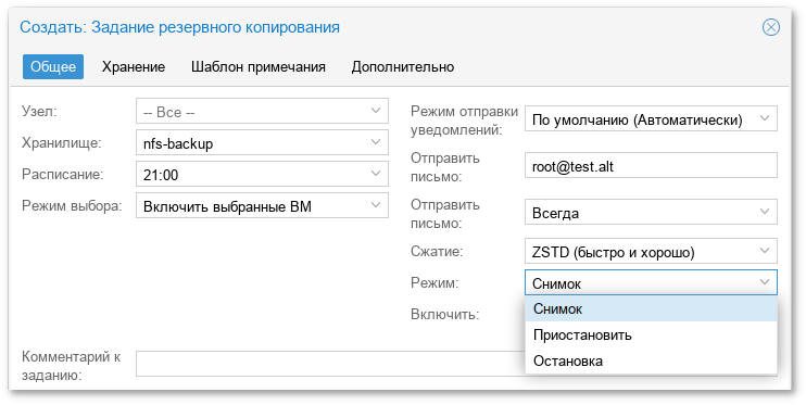 Таким образом, хранилище local будет отключено в пользу local-btrfs, расположенного на дополнительном подтоме. Хранилище local-btrfs поддерживает все типы данных (образы, шаблоны, резервные копии и т.д).